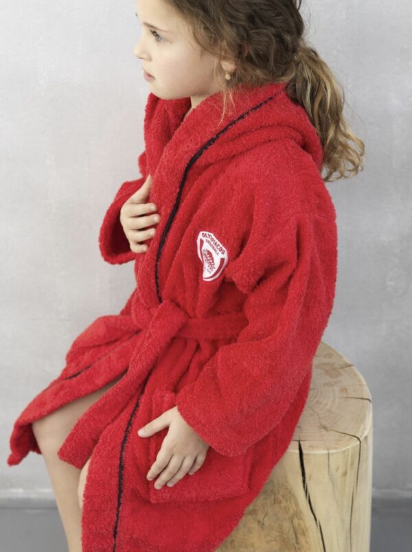 Παιδικό Μπουρνούζι Official Team Olympiacos B.C. OLYMPIACOS 1925 YOUNG από ύφασμα 100% cotton 420 γραμμαρίων ανά m².